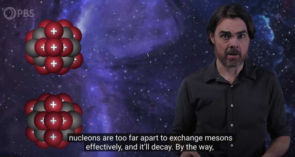 Fakta di atas ini penting untuk menjelaskan kenapa inti atom (neutron & proton) bisa terikat meski muatannya tidak bertolak belakang (0 & 1, bukan -1 & 1). Singkatnya, quark-nya mereka ‘berkomunikasi’. Itu karena, quark dari neutron dan proton yang berdekatan (di inti atom) saling bereaksi satu sama lain (akibat perbedaan muatan u & d quark).